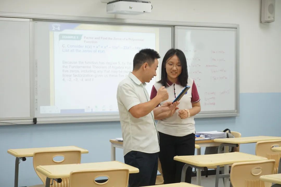 活跃、自由、丰富……,这些词是孙老师概括他在国际教育行业多年所看到的,学生的思维、整体的学术氛围是活跃且自由的,学校能够给学生提供适合他们风格、爱好的课程,学生的选择也很多元,大家在这种环境中个性能够得以发展。同时,社团发展的成熟、前沿也让学生的很多兴趣爱好有了最大程度的保留和持续的深入。因此,在这样的环境之下,数学学科的教学也有很大的发展空间。