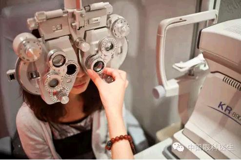 前倾后退法(Approacdhing and recdeing) 此法适用于散光度为0.75 Dc以下的散光患者。假定被检眼水平光带已被中和,垂直光带为顺动.其特征是光带宽、亮、快,但边界不够清楚,不利于散光轴位的确定。将套管下移,也不能 使光带变窄,这时检查者可将身体前倾,缩短检查者与被检查眼之间距离,可使光带变窄,且能使散光轴位边界较明显。然后再用食指慢慢旋转灯座管,使光带偏向 85°和95°,进行散光轴位的确定。