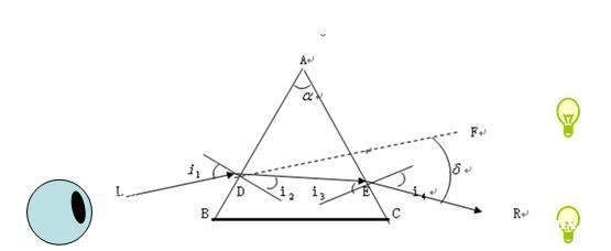 三棱镜之度数大小,即折射能力大小,决定于其顶角之大小,有相同顶角之三棱镜,折光力相同。三棱镜之厚度与两边之长度有关,边越长,底越厚。如果将二边长度缩短至很小时,其夹角不变,但其厚度将变为很薄。通常玻璃三棱镜只能在一只眼上配戴7度用于斜视治疗。根据玻璃三棱镜的不足,近年来美国发明了在0.5毫米厚的基底上,平行排列多个相同度数的小三棱镜,这样就大大的减少了三棱镜的重量,厚度,使戴用较大度数的三棱镜变为可能。