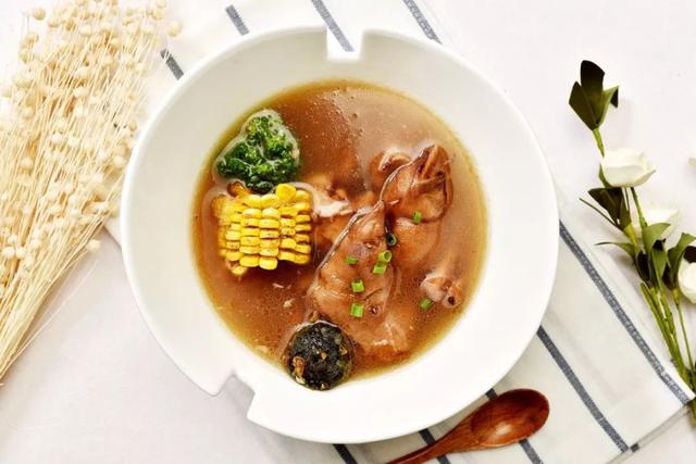 【制作】熟地黄20克,牛蹄筋250克。酱油、料酒各15克,盐、蒜苗末各适量。将熟地黄洗净,切碎,装入药袋,封好口。把牛蹄筋放入冷水锅中加热,焯烫一下捞出,洗净后切成片,备用。蹄筋片放入煮锅中,加适量水煮沸,放入装有熟地黄的药袋,再加入料酒、酱油,小火煮2小时。将煮好的蹄筋汤加盐调味后盛入容器,撒上蒜苗末即可。随餐食用,每周1~2次。